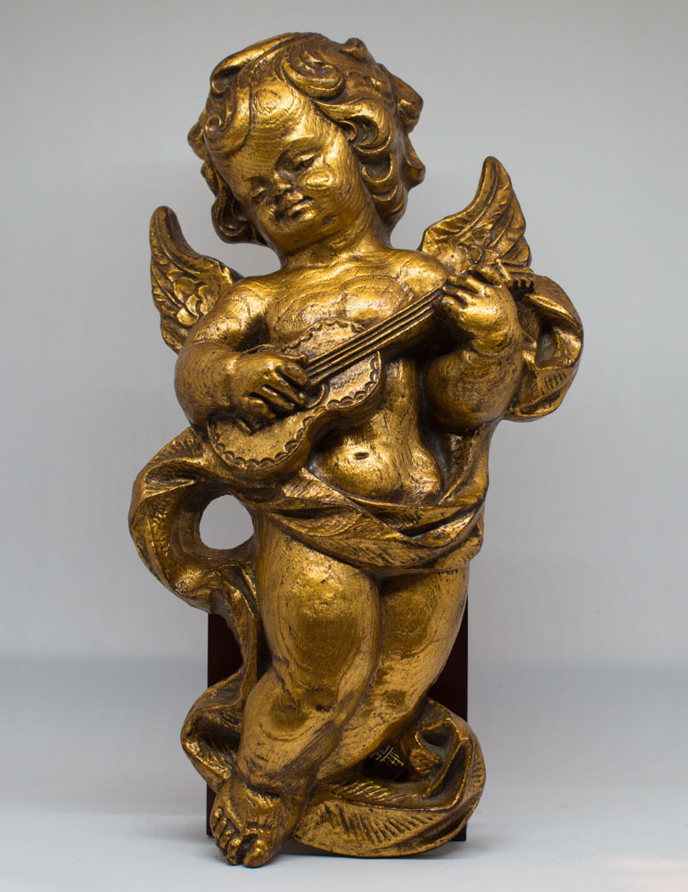 Ángel de resina acabado en oro viejo, decoración para pared.