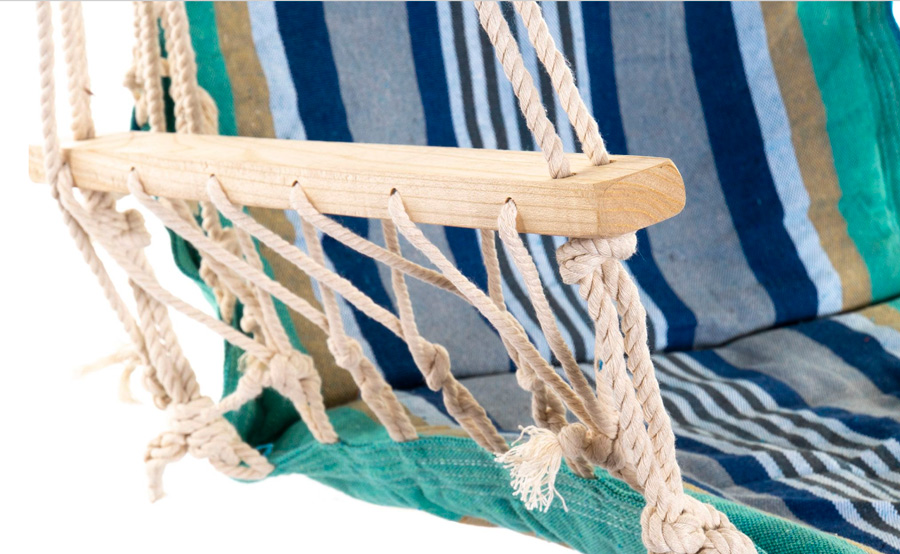 Fabricado con tejido de algodón, madera y con anilla de acero.