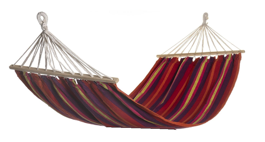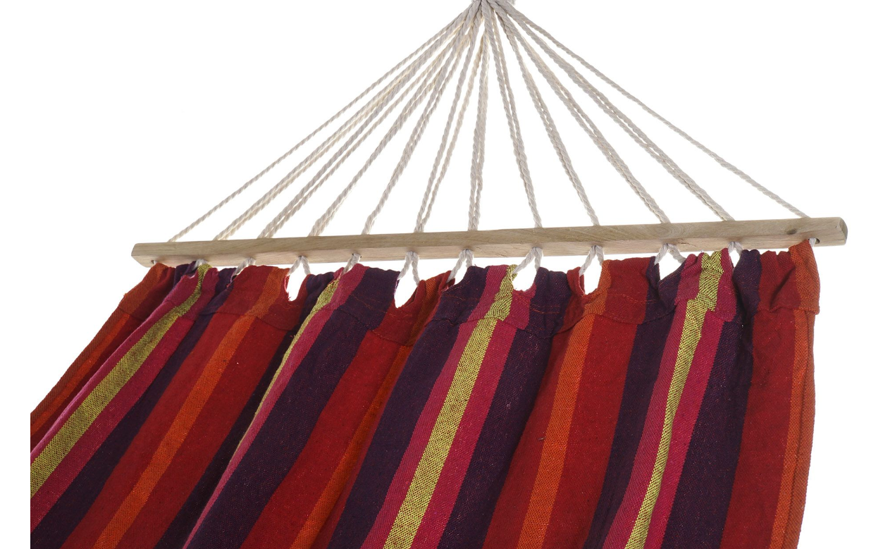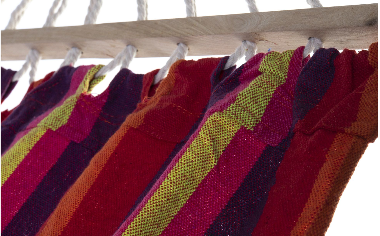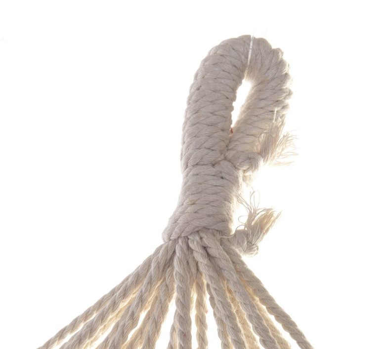 Fabricada en tejido y cuerda de algodón con soportes de madera.