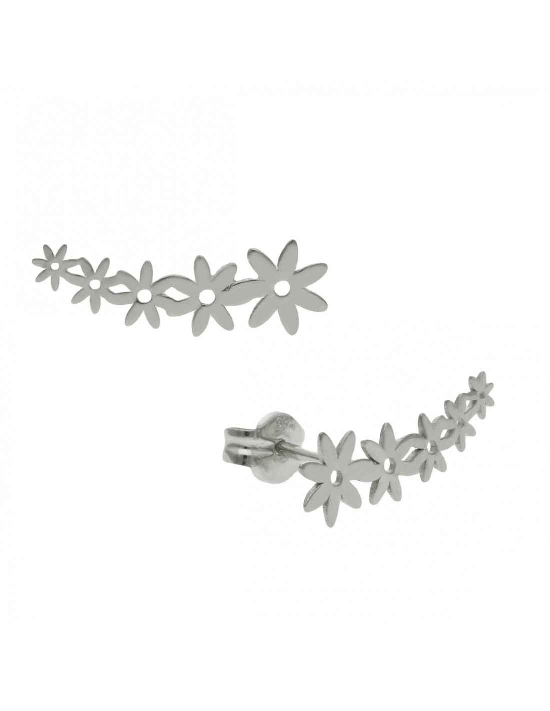 Bonitos y elegantes pendientes decorados con flores de plata de ley 925mm que suben por el lóbulo de tu oreja.